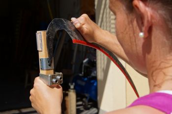 Der richtige Winkel zwischen Worb und Sensenblatt ermöglicht ein leichtes und effizientes Mähen. Er wird folgendermaßen eingestellt: