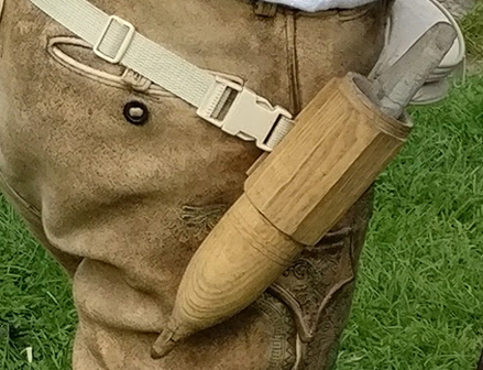Den Worb so vor sich aufstellen, dass das kleine „Warzenloch“ (Blechbeschlag) am Worbende zum Körper gerichtet ist.
