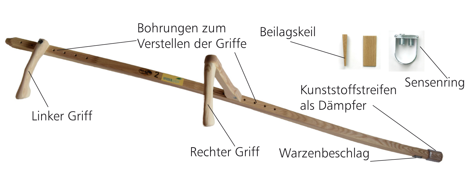 Das zu ermöglichen wurde der vorliegende Holzworb mit den verstellbaren Griffen und die Sensenvereins-Sense, Marke „Tannenbaum“ entwickelt.
