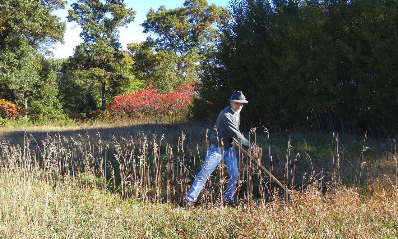 He is running the "Eco-Farm Mystic Prairie" and a scythe shop with Austrian blades and all the other stuff necessary for traditional hand mowing and he teaches courses as well.