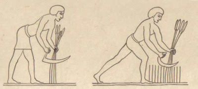 Schon unter der Fülle der bildlichen Darstellungen, welche die Grabkammern und Tempel der alten Ägypter ausschmücken, finden sich viele mit Ernteszenen und bei der Gewissenhaftigkeit, mit der die ägyptischen Künstler arbeiten, geben uns diese Bilder genauen Aufschluss über die Art, wie die Getreideernte vorgenommen wurde und über die dabei verwendeten Geräte.